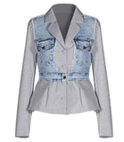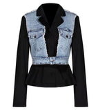 Cropped denim overlay jacket fused with a sleek long-sleeve tailored base.