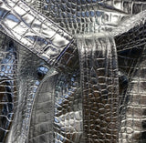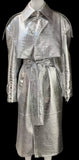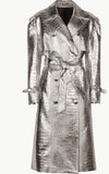 Embrace fashion-forward sophistication with this Silver Croco Pattern Leather Trench Coat. Crafted from premium leather, this lightweight trench showcases a striking crocodile pattern, adding a touch of glamour to any outfit. Make a bold statement in style with this timeless piece.