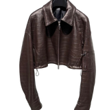 The front zip fastening, side pocket zip, and crop silhouette are fully lined.
