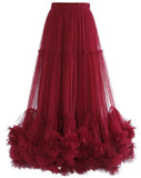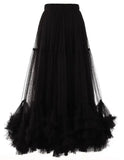 Elastic waist, dramatic tiers, tulle, completely lined.