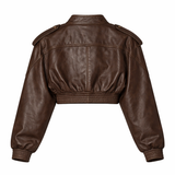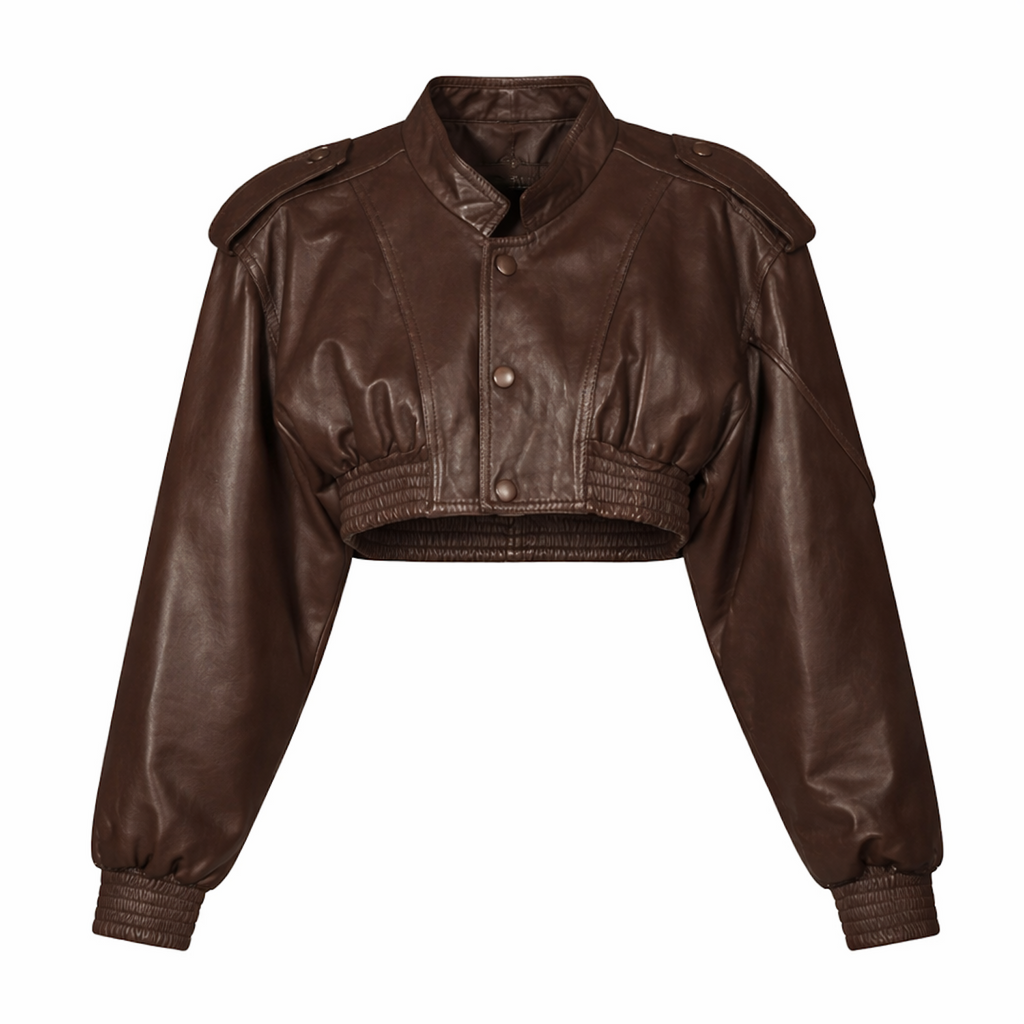 Cropped Leather Snap-Front Bomber