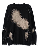 Loose fit sweater, pullover style, pattern with cut-outs and pins attached.