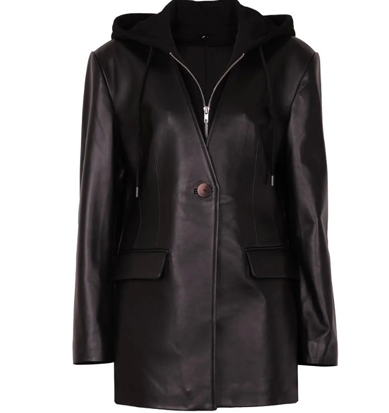 Button front, front pockets, oversized and tunic length, datable hood, fully lined.