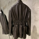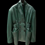 This exclusive M&C blazer is a cool alternative to the standard leather jacket - it's one of those investments that you'll still love years from now. This piece is impeccably made from textured leather treated with oils for utmost softness. It's spliced with zips and stitched quilted panels to showcase exquisite craftsmanship. The cut adds waist defining details to any figure.