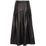 This exclusive M&C A-Line Maxi Skirt is a cool alternative to any trouser or skirt - it's one of those investments that you'll still love years from now. This piece is impeccably made from smooth leather treated with oils for utmost softness. It's spliced with zips and stitched panels to showcase exquisite craftsmanship.