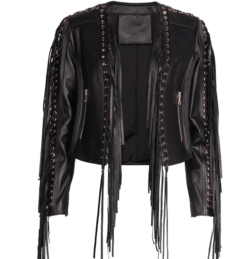This exclusive M&C fringe leather jacket is a cool alternative to the standard leather jacket - one of those investments you'll still love years from now. This piece is impeccably made from textured leather treated with oils for utmost softness. It's spliced with zips and stitched knit panels to showcase exquisite craftsmanship.