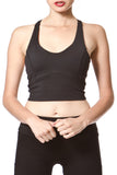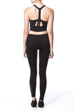 Crafted from high- performance stretch jersey,  this sleek black design has a cut-out back design for ease of movement and an elasticated underband for shape and support.  Pair yours with the coordinating leggings for a chic gym- to-street look.