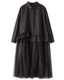 Relaxed fit, intricate lace front panel, and scalloped hem detail.