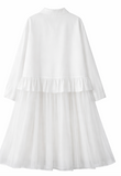 This exclusive M&C blouse balances timeless elegance with modern ease. Featuring a detailed lace front panel and soft, long sleeves, the silhouette flows into a beautifully scalloped hem for a refined finish.
