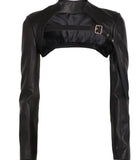 This exclusive M&C bolero is a cool alternative to the standard leather jacket - one of those investments you'll still love years from now. This piece is impeccably made from the softest leather treated with oils for utmost softness. The new cropped shape elongates the body and looks fantastic with high-rise jeans.