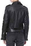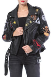 Asymmetrical zip fastening, moto details & hardware throughout, embroidered emblems, fully lined.