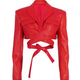 Crop Leather Wrap Jacket