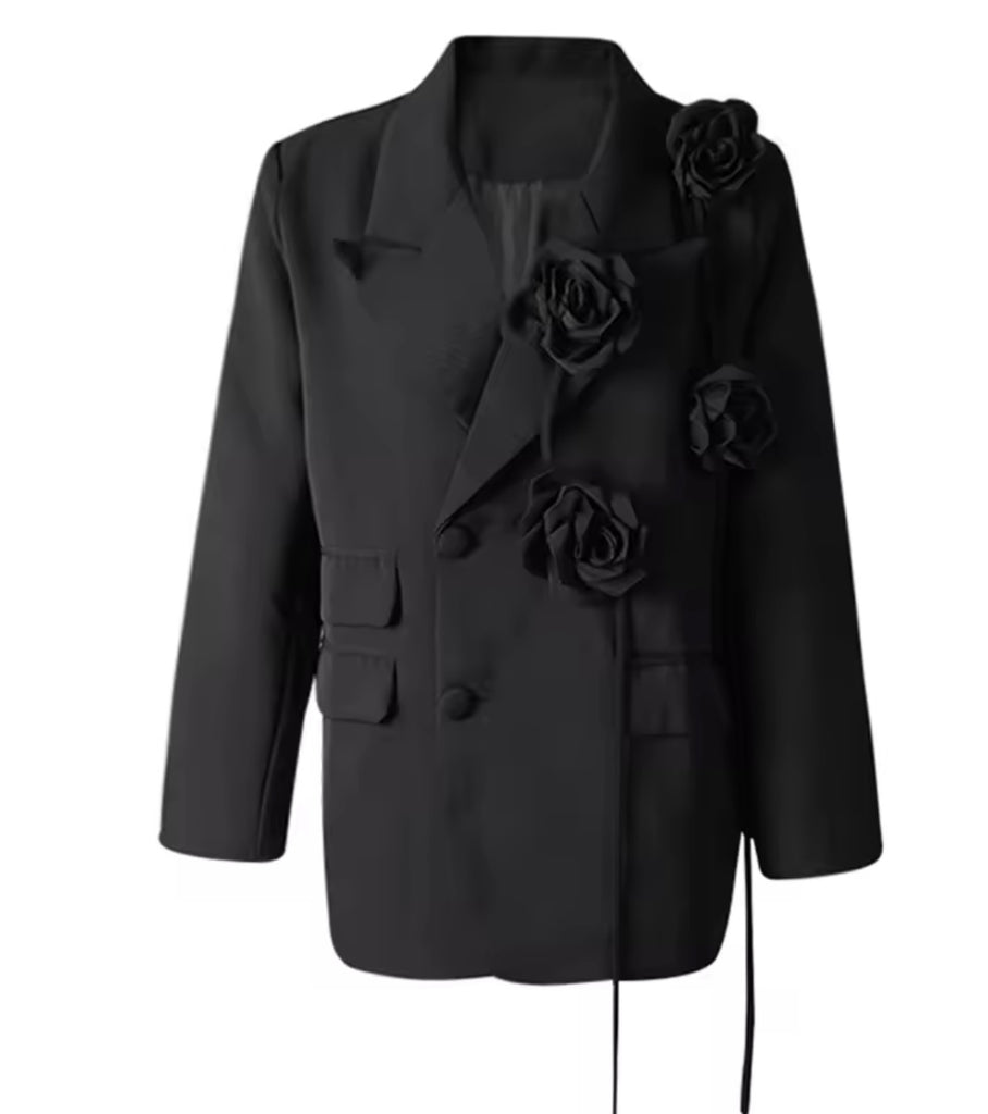 This statement-making blazer is tailored for an easy fit. It features unique design twists that make it anything but basic, and with its seasonless fabric and texture, it remains on-trend and chic. Clean tailoring meets dramatic floral appliqués that bloom across the lapel and bodice, adding dimension and a touch of daring. With tonal buttons and double pockets, it’s a romantic rework of the classic black blazer, perfect for work or try it casually with jeans, or take it to your evening event and wow the crowds!