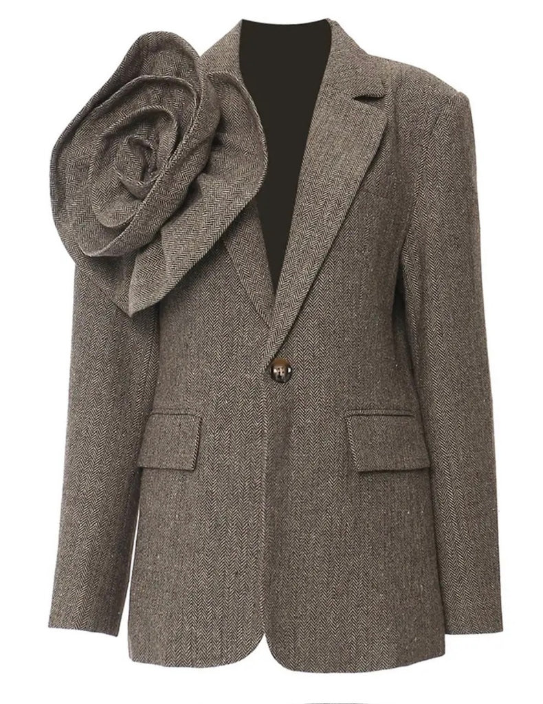 Single breasted, herringbone fabric, completely lines with large bow detail.