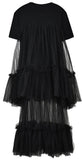 This timeless, versatile, and transitional statement-making maxi dress is figure-flattering and comfortable. The luxe knit fabric is ultra-soft, and the tulle trim is attached in tiers. The full skirt lets you wear it casually with booties and a leather moto or dress up with heels and a clutch.