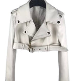 This exclusive M&C biker is a cool alternative to the standard leather jacket - it's one of those investments that you'll still love years from now. This piece is impeccably made from textured leather treated with oils for utmost softness. It's spliced with zips and stitched quilted panels to showcase exquisite craftsmanship. The new cropped shape elongates the body and looks fantastic with high-rise jeans.