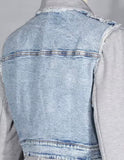 Cropped denim overlay jacket fused with a sleek long-sleeve tailored base.