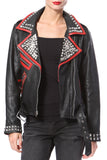 Stud & Embroidered Leather Moto